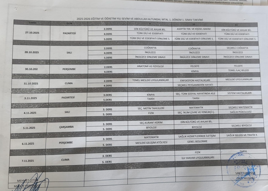 2025-2026 EĞİTİM ÖĞRETİM YILI 1. DÖNEM 1. SINAV TAKVİMİ BELLİ OLDU
