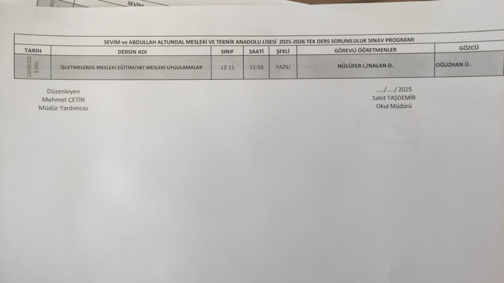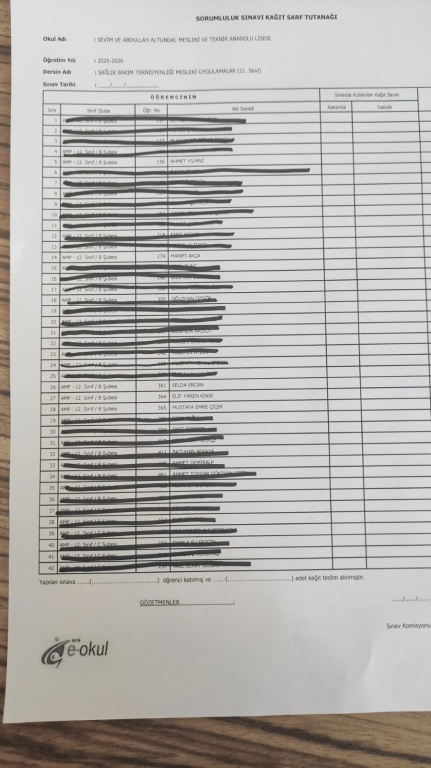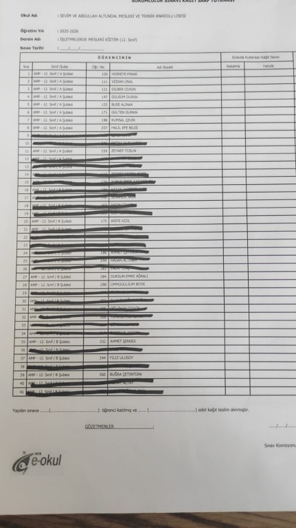 Sınava girecek öğrenciler aşağıda listelenmiştir. Üstü çizili öğrenciler sınava girmeyecktir.